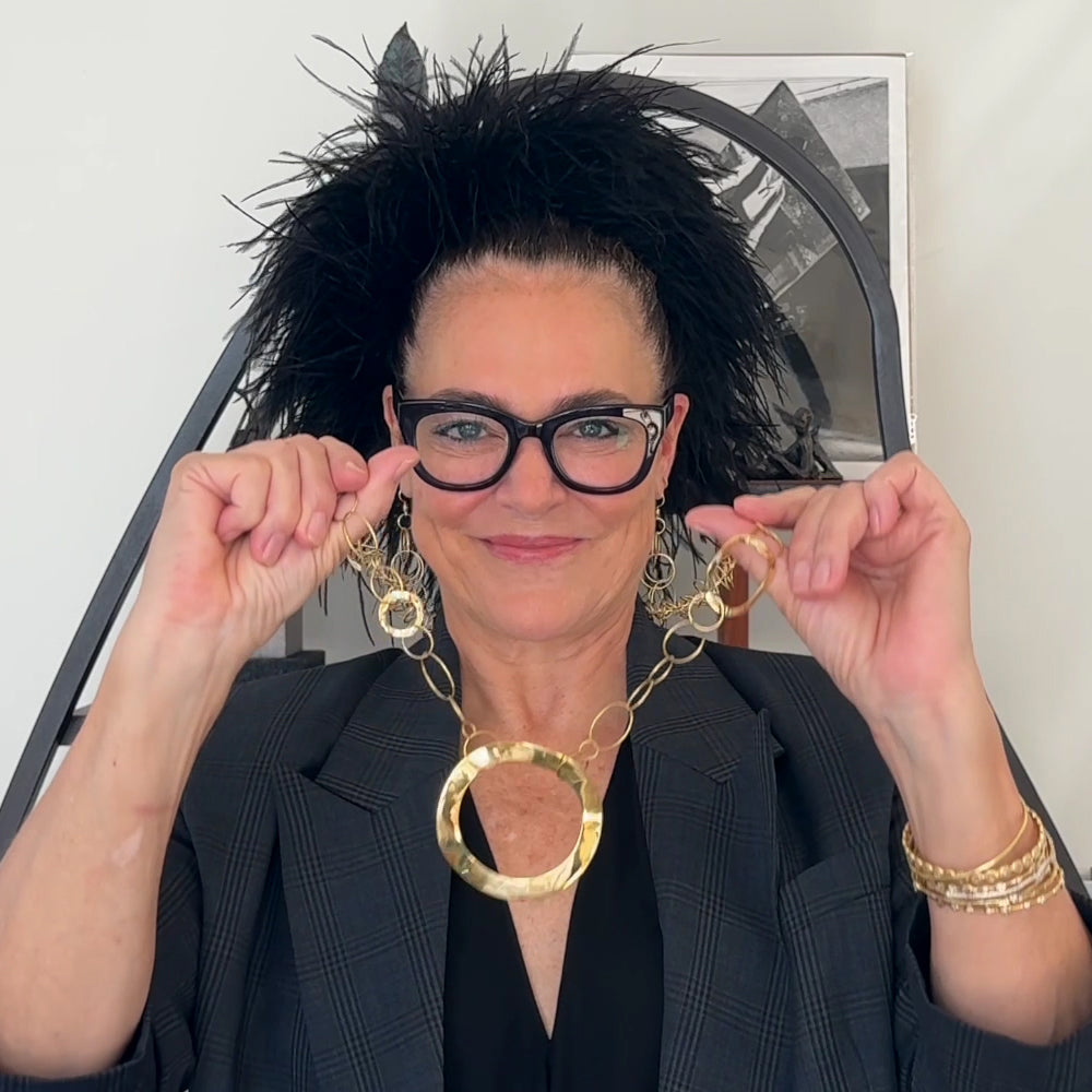 Large Wavy Circle and Wire Links Necklace 49.5"