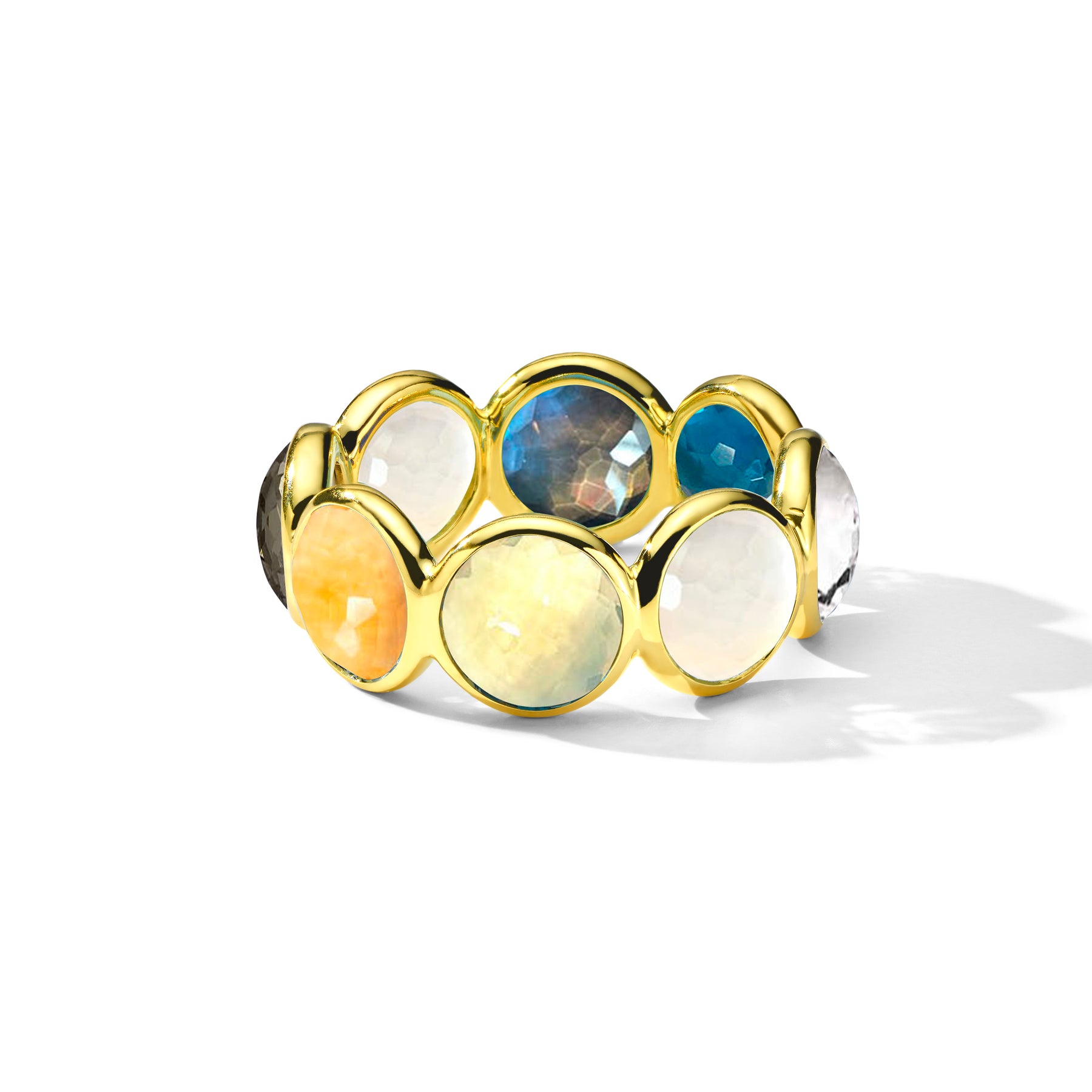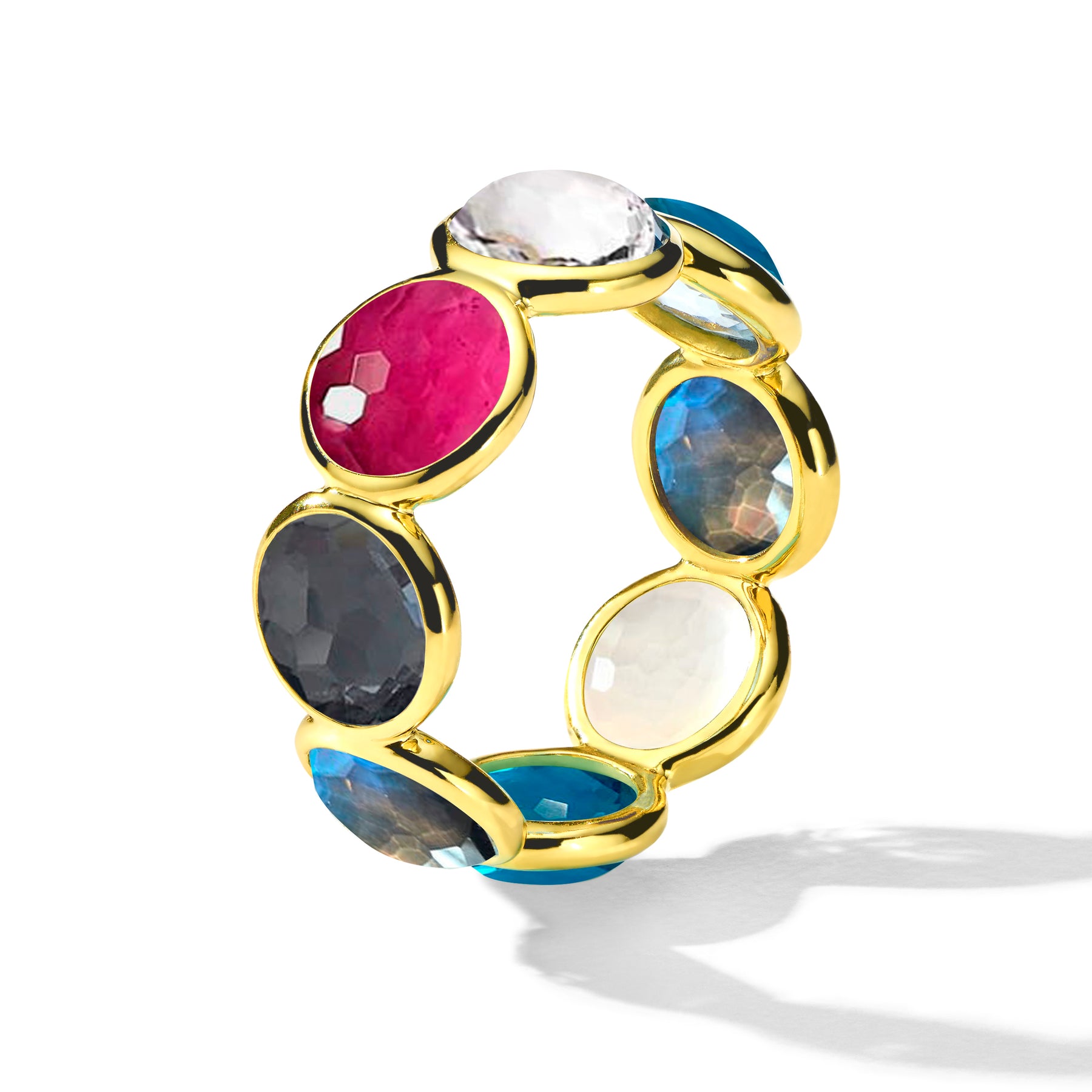 A fresh way to celebrate “forever,” this eternity ring from our Lollipop® collection features stones in colors inspired by wildflowers. Designed in a stackable band of gold bezels, it's handmade with green-gold citrine, blue topaz, white mother-of-pearl, triplets of rock crystal over mother-of-pearl and lapis, orange citrine and a doublet of rock crystal over brown shell — each hand-faceted to make its brilliant hue truly sing. • 18K Gold • Gemstones: Green Gold Citrine, Blue Topaz, White Mother-of-Pearl, Rock Crystal, Mother-of-Pearl, Lapis, Orange Citrine, Rock Crystal over Brown Shell Doublet