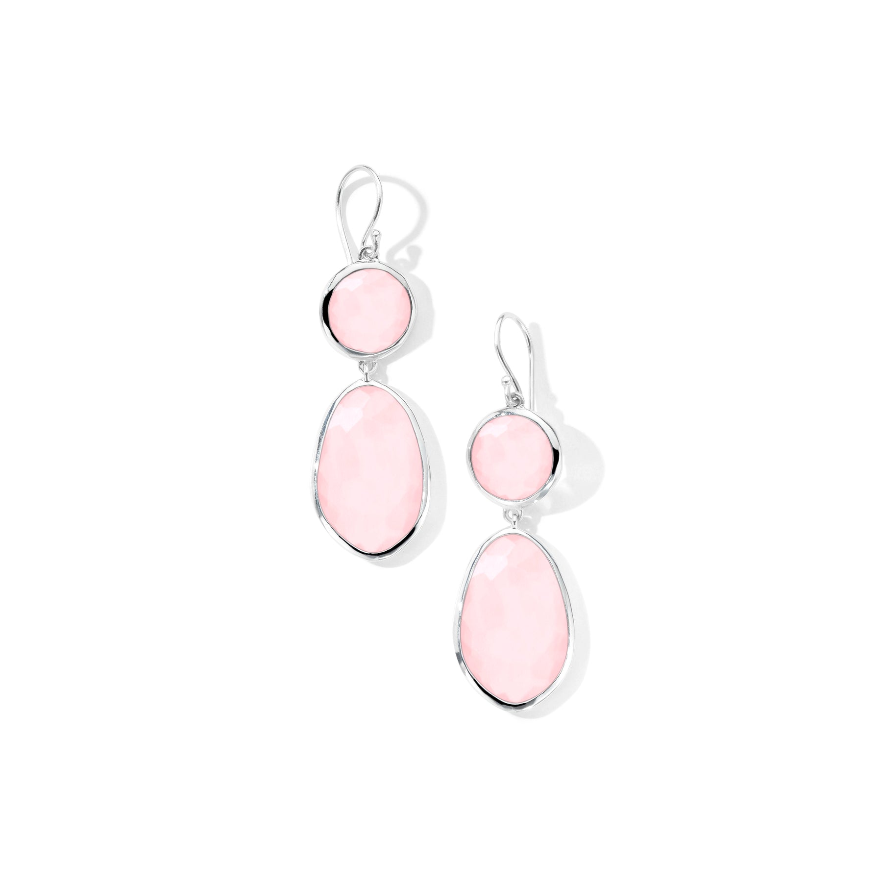 One of our iconic silhouettes, these snowman earrings join two striking stones into elegant double-drops of 925 silver. Each is a triplet of faceted rock crystal layered above mother-of-pearl and deep blue lapis. The rich hues combined with the dazzling iridescence create a stylish accent to set off a range of looks. • Sterling Silver • Gemstones: Rock Crystal, Mother-of-Pearl, Lapis • Length: 1.75" Width: .56"